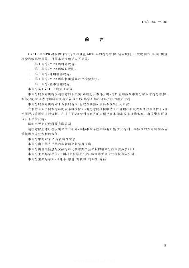 CY/T 58.1-2009 MPR 出版物 第1部分:MPR码符号规范