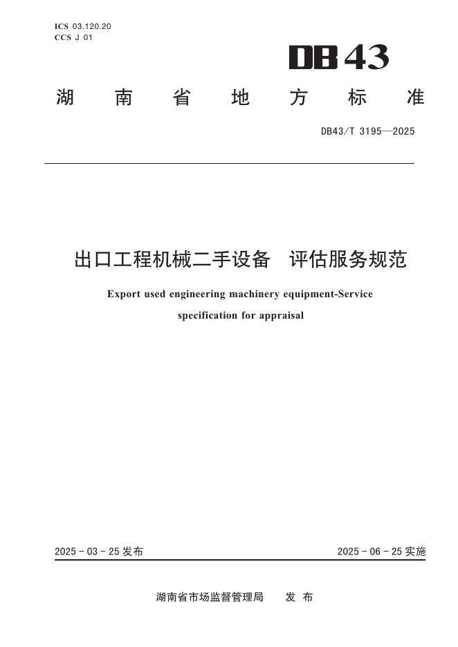 DB43/T 3194-2025 出口工程机械二手设备评估通则