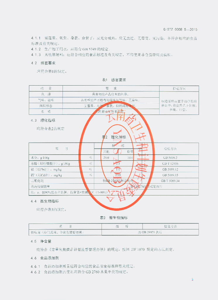 Q/STZ 0008S-2015 嵩明天植天然植物深加工有限公司 水果干制品