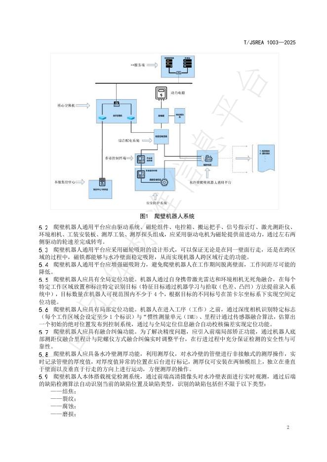 T/JSREA 1003-2025 大型电站锅炉水冷壁爬壁机器人规范