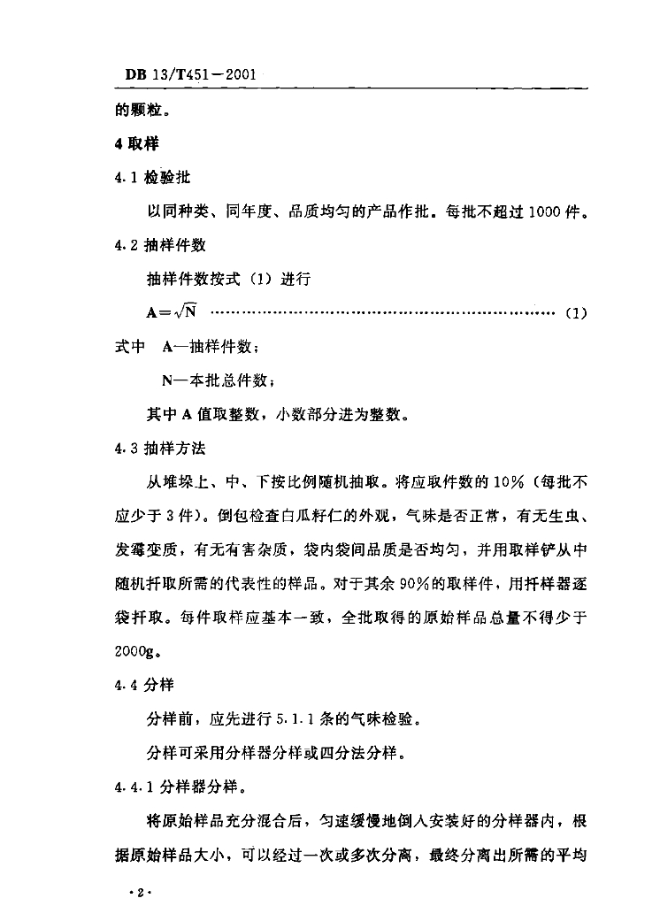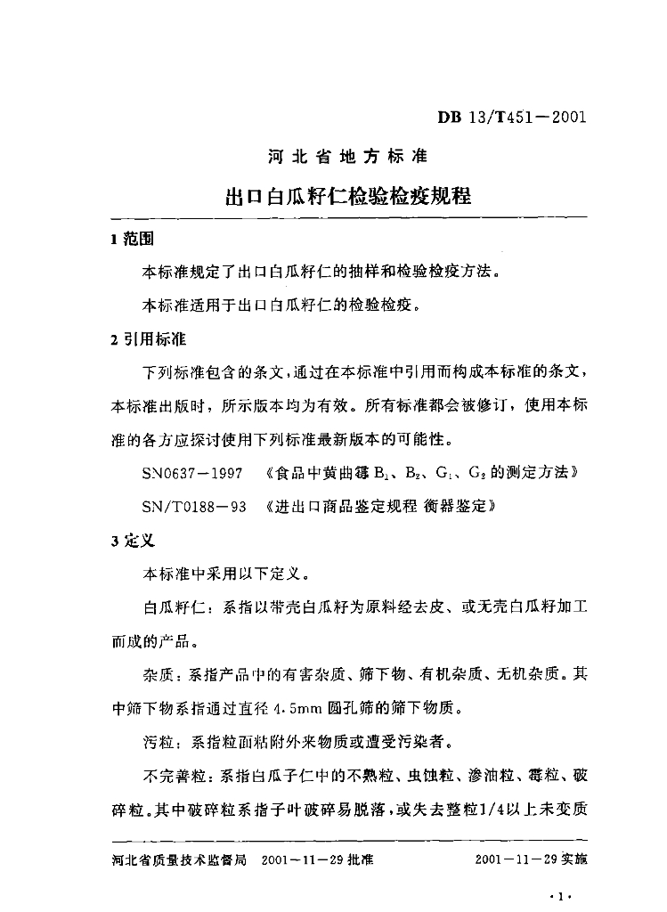 DB13/T 451-2001 出口白瓜籽仁检验检疫规程