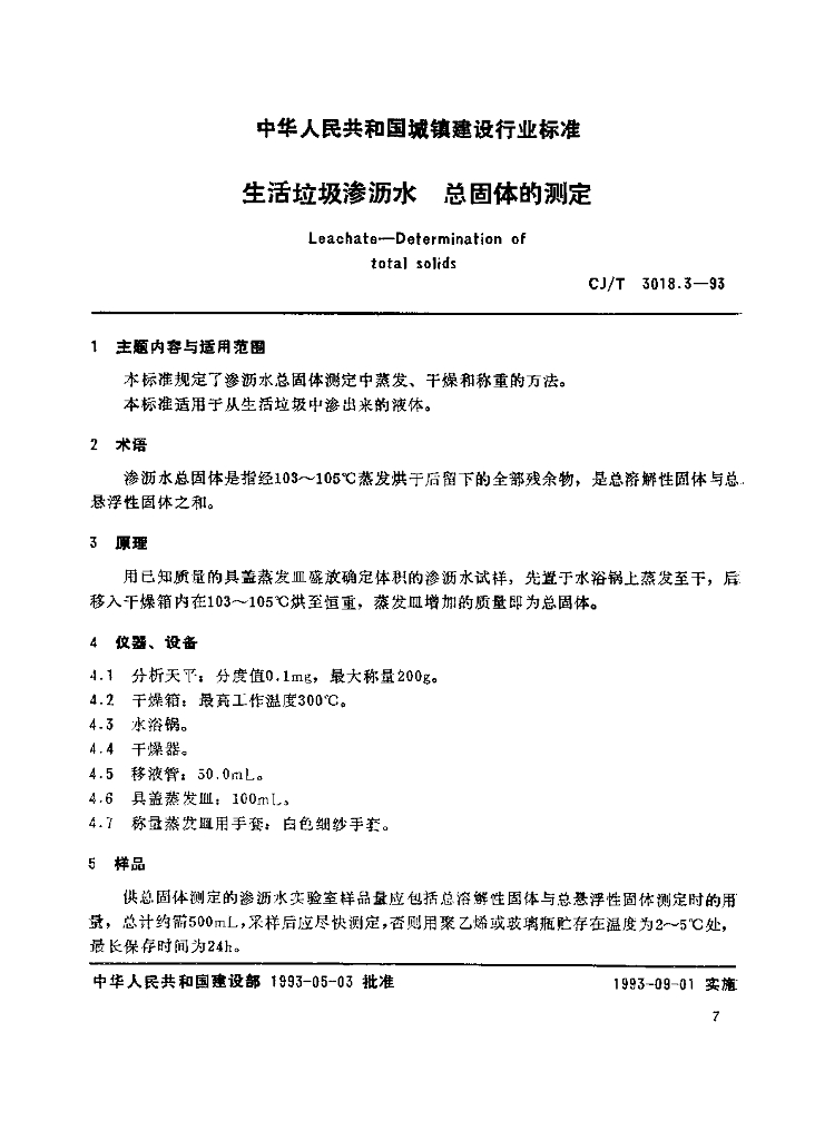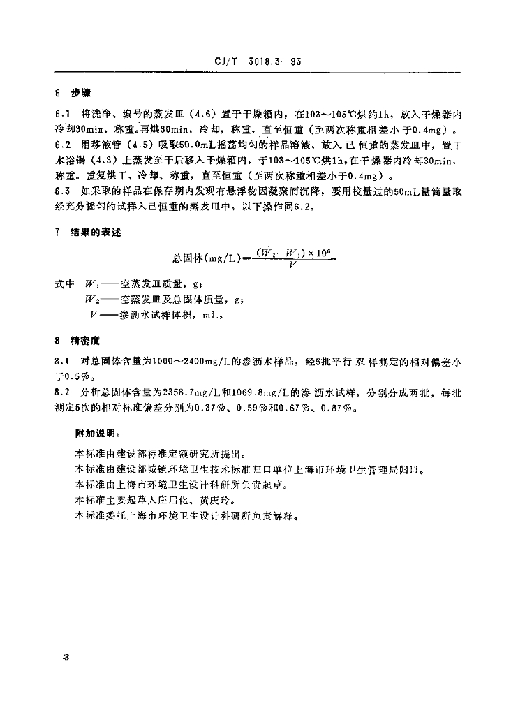 CJ/T 3018.3-1993 生活垃圾渗沥水 总固体的测定