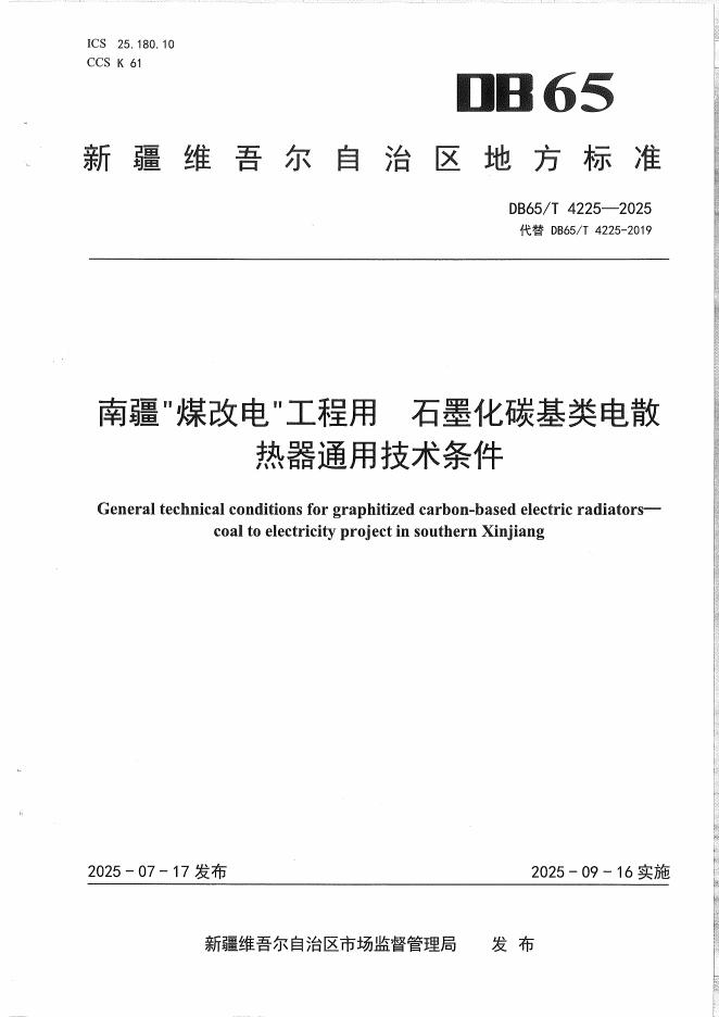 DB65/T 4225-2025 南疆"煤改电"工程用 石墨化碳基类电散热器通用技术条件