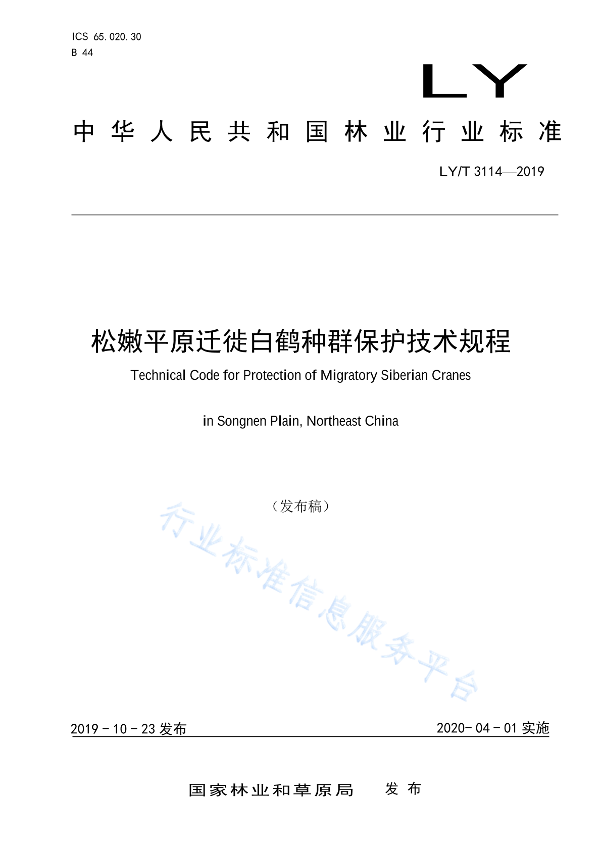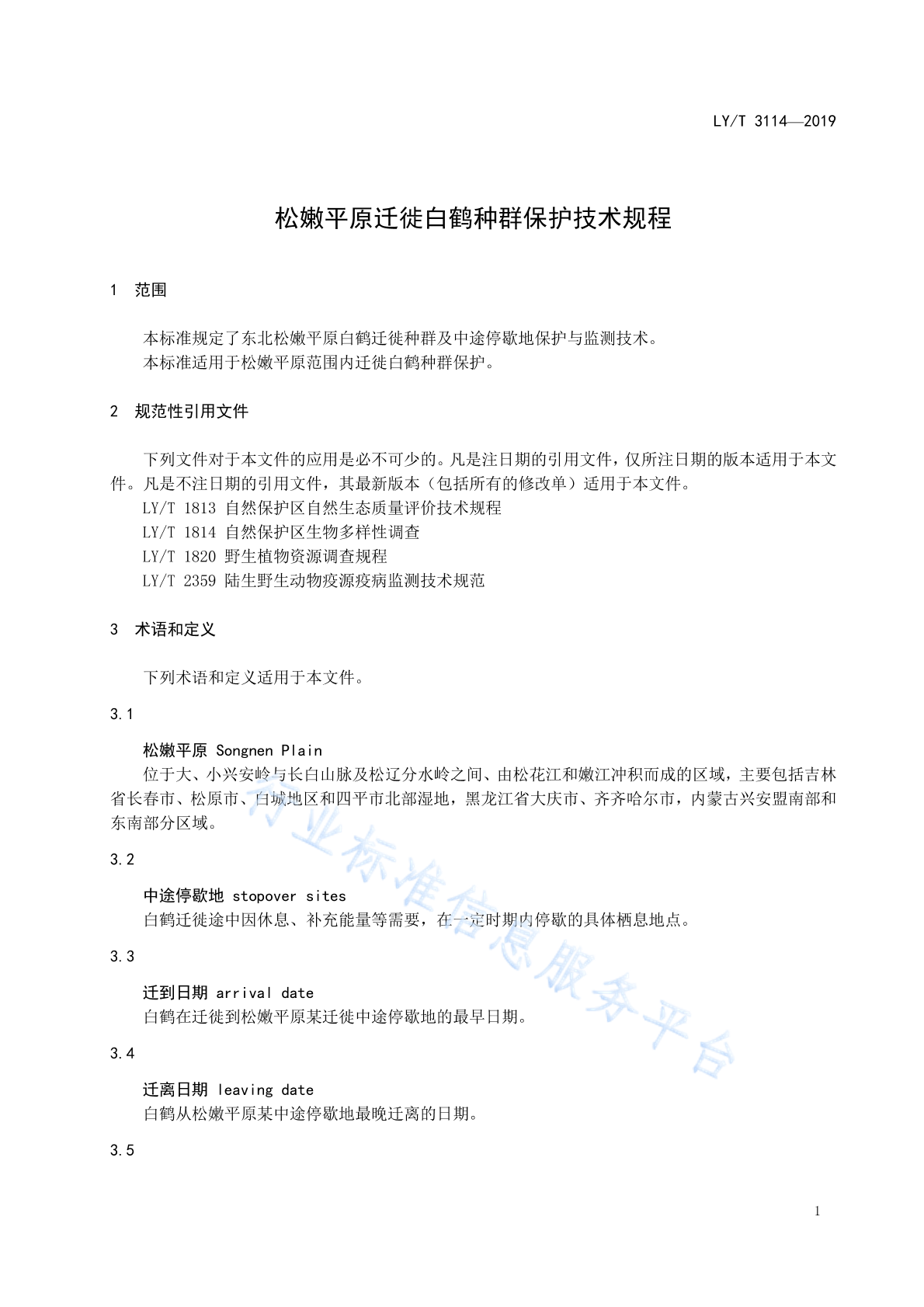 LY/T 3114-2019 松嫩平原迁徙白鹤种群保护技术规程