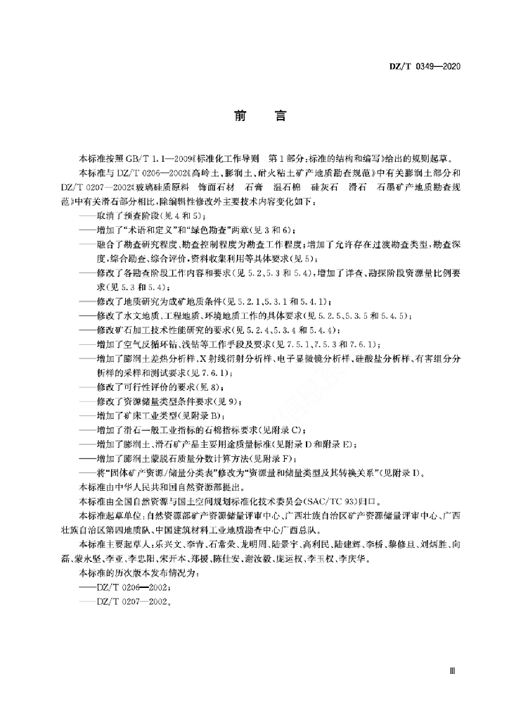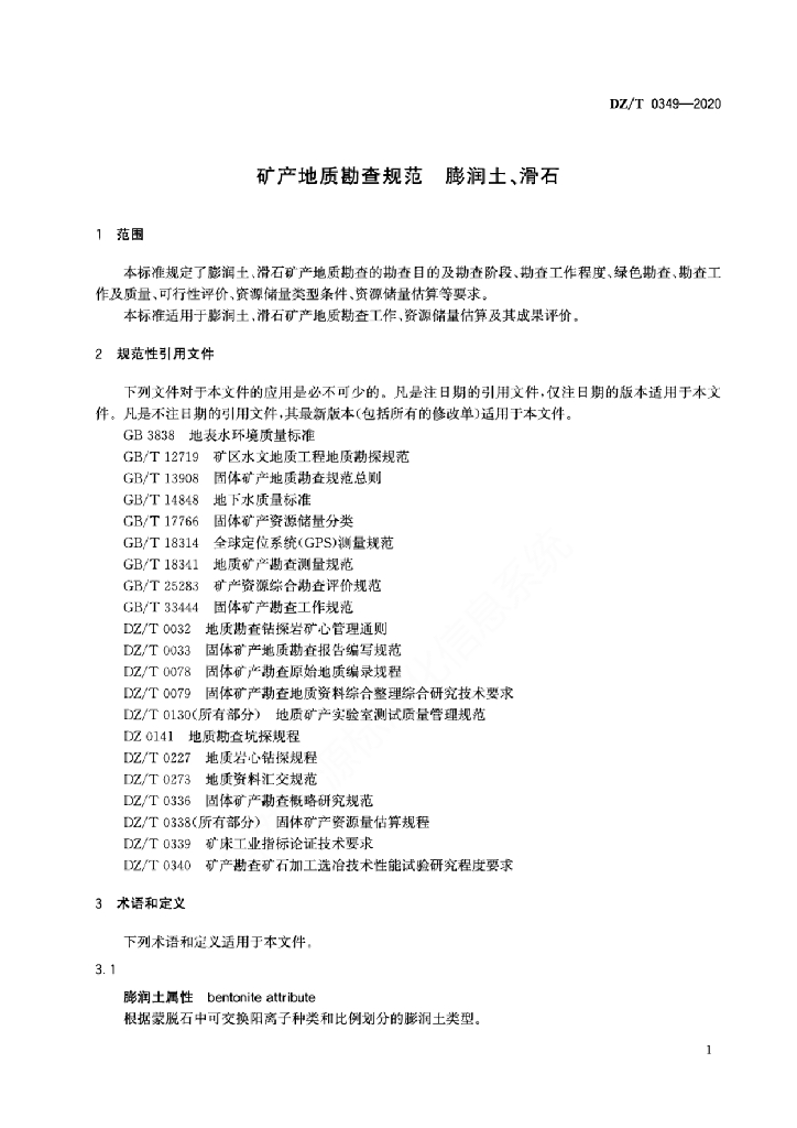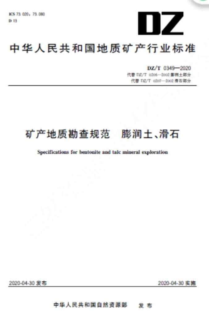 DZ/T 0349-2020 矿产地质勘查规范 膨润土、滑石