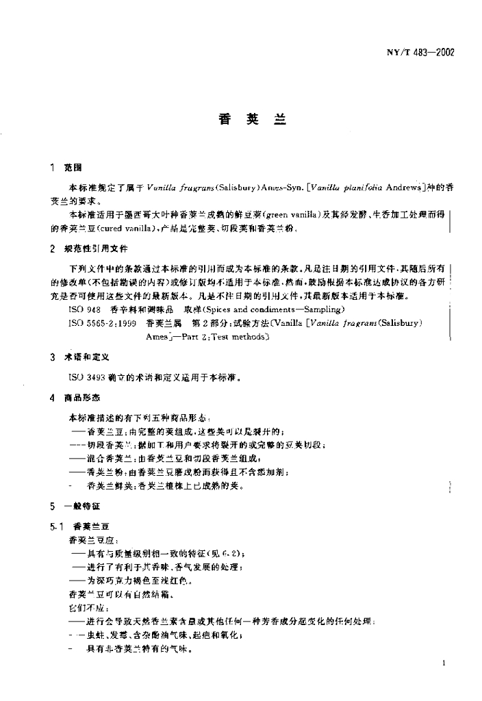 NY/T 483-2002 香荚兰