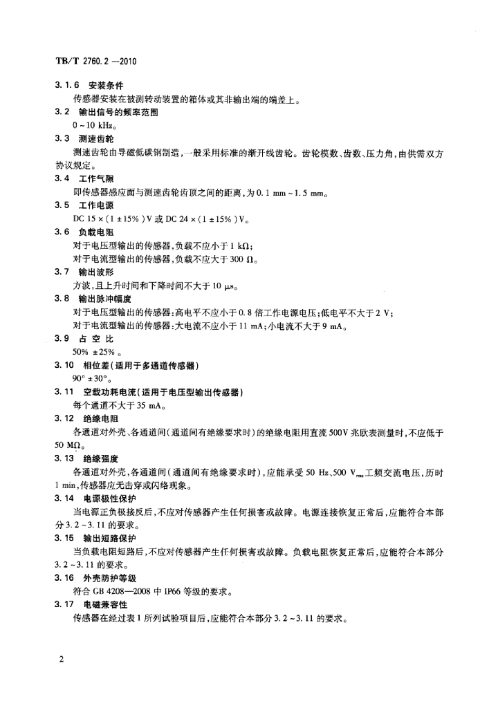 TB/T 2760.2-2010 机车转速传感器 第2部分:霍尔式速度传感器