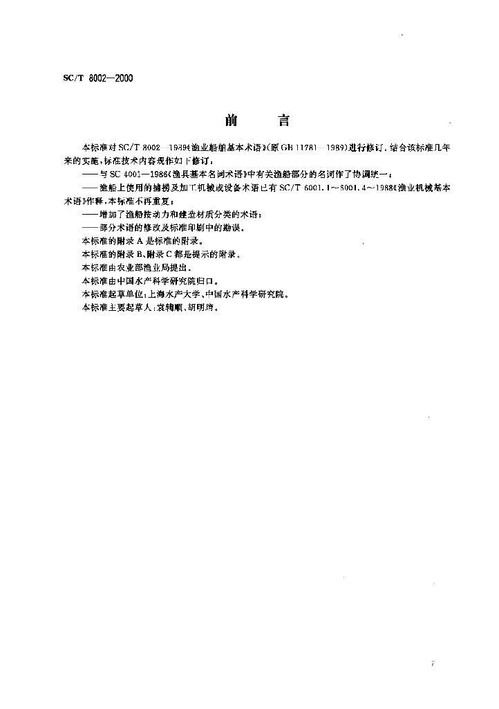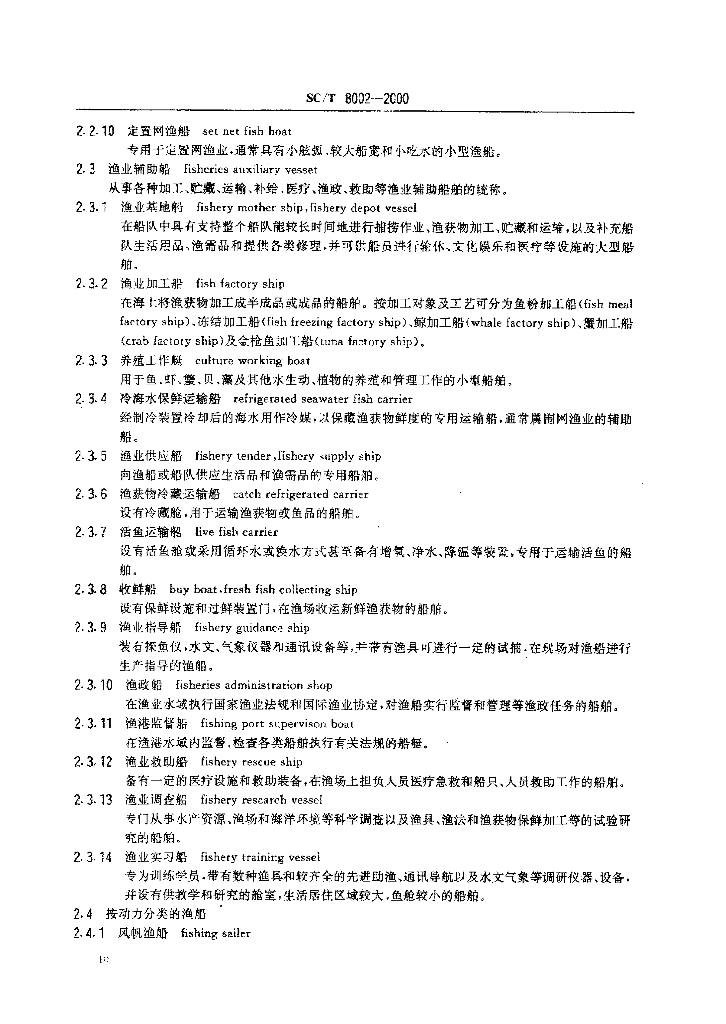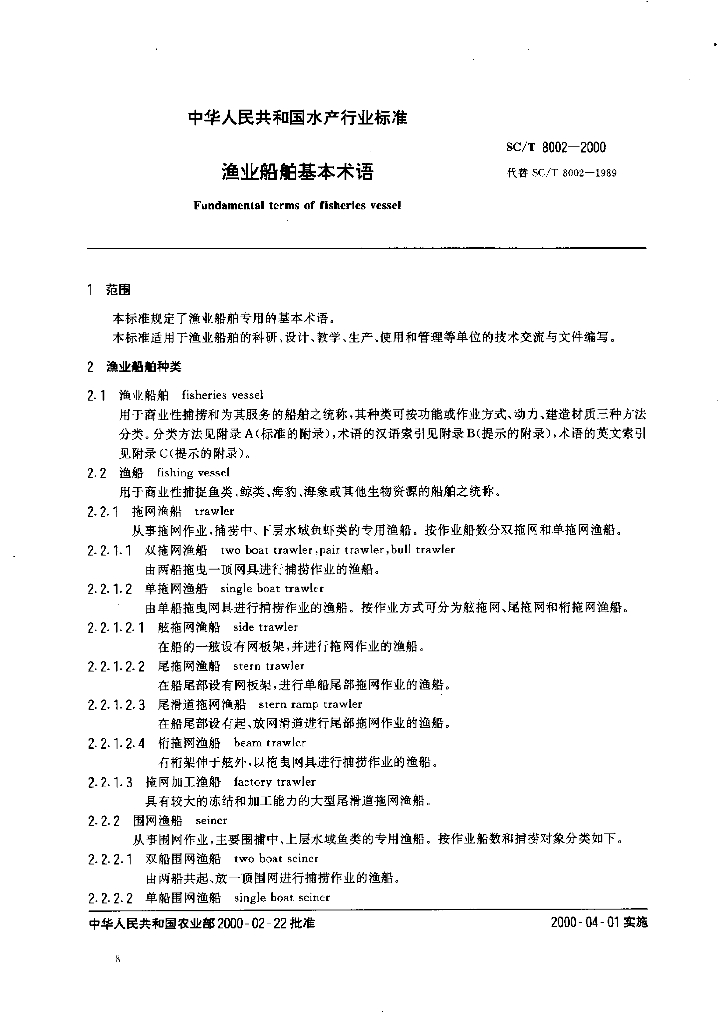 SC/T 8002-2000 渔业船舶基本术语