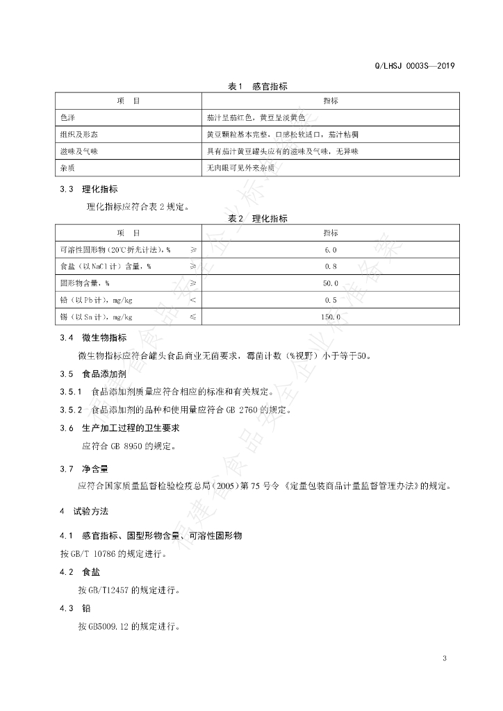 Q/LHSJ 0003S-2019 茄汁黄豆罐头