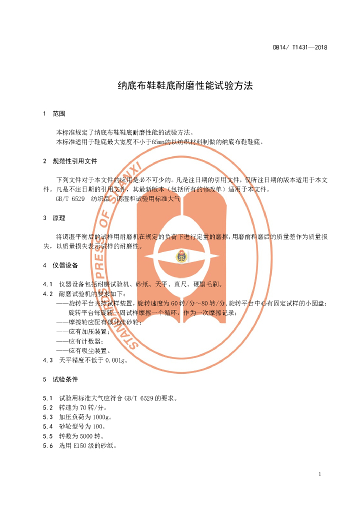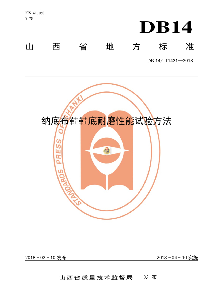 DB14/T 1431-2018 纳底布鞋鞋底耐磨性能试验方法