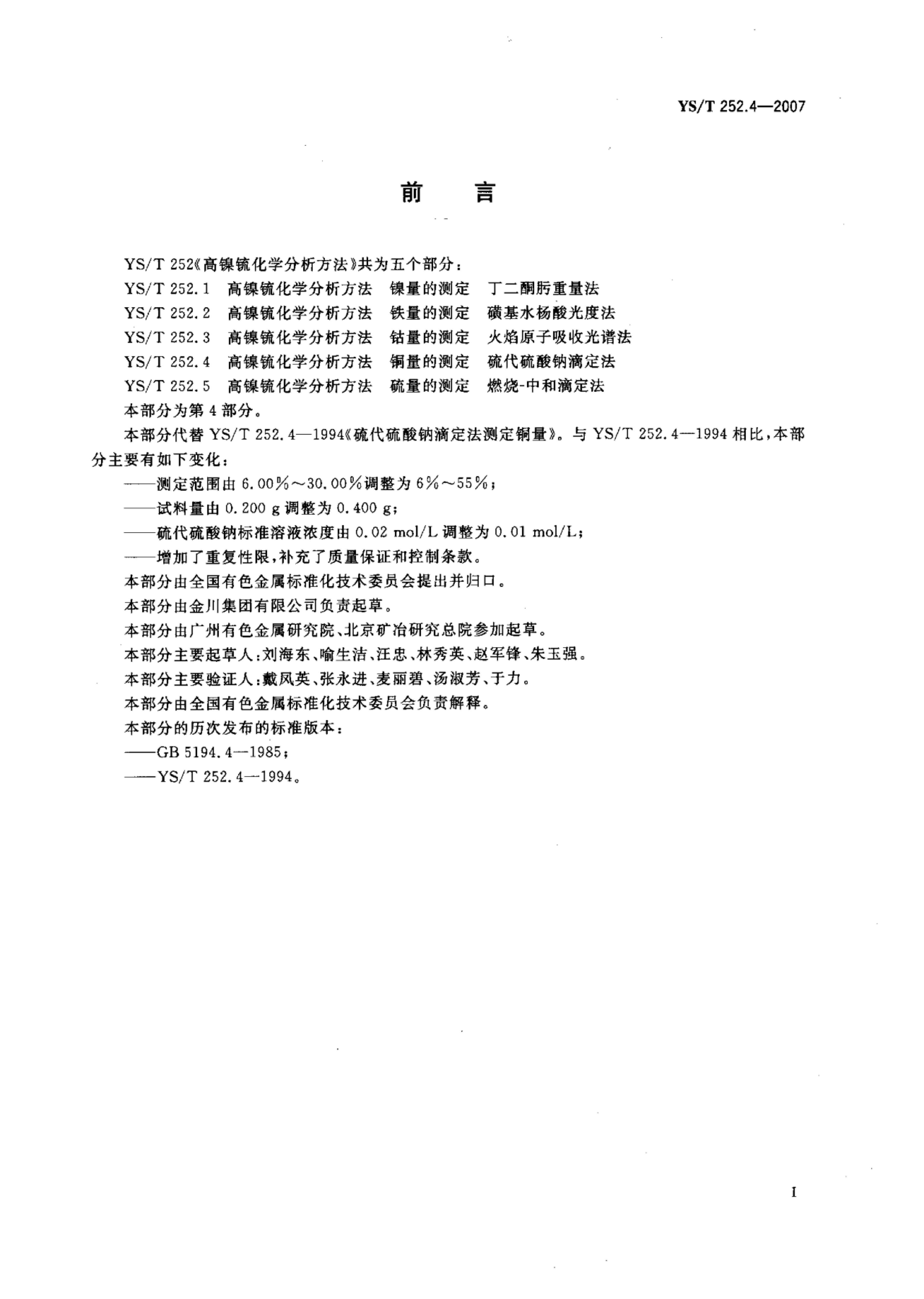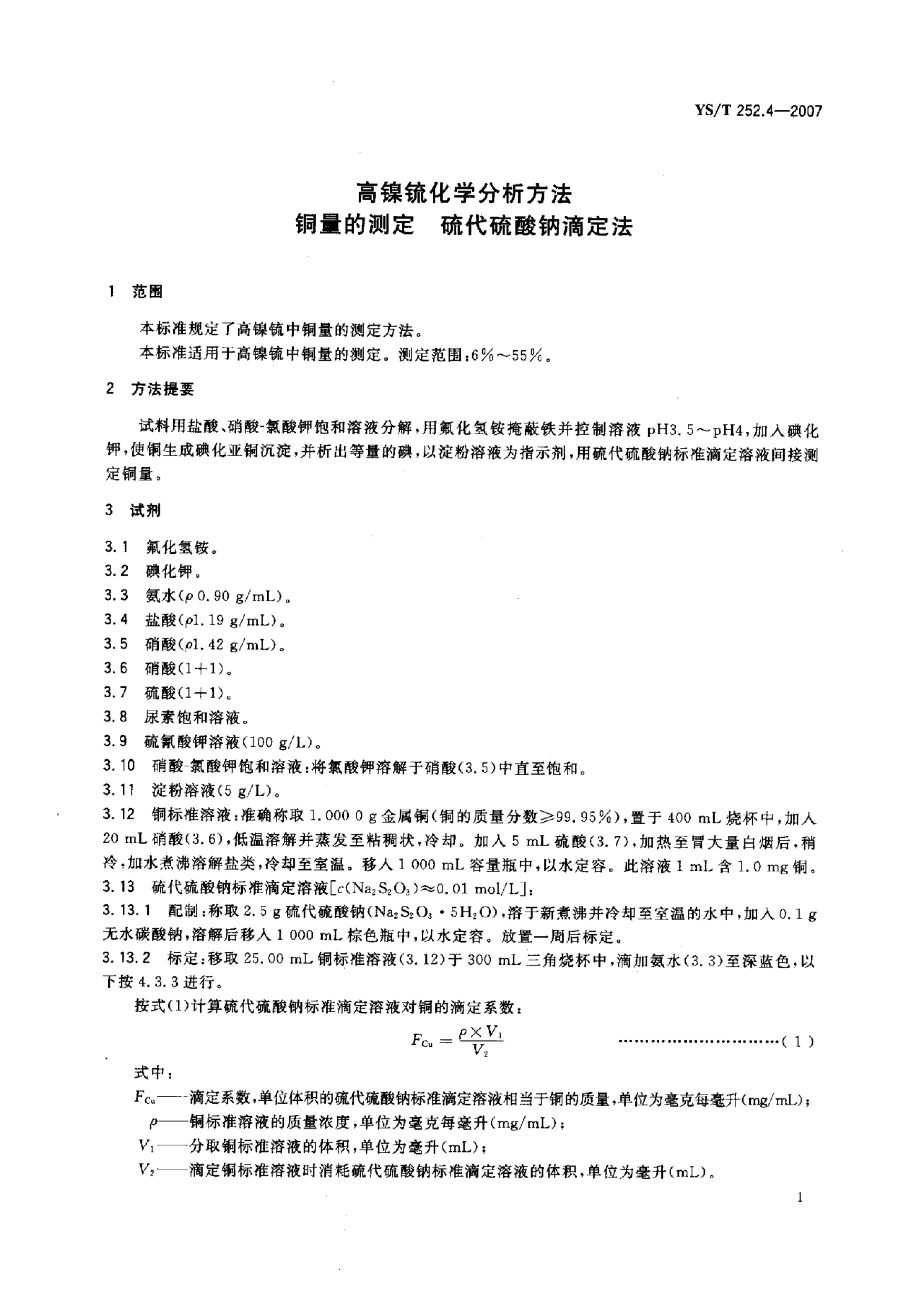 YS/T 252.4-2007 高镍锍化学分析方法铜量的测定硫代硫酸钠滴定法