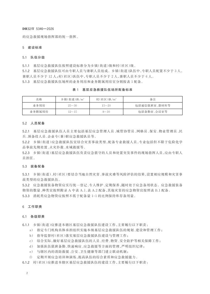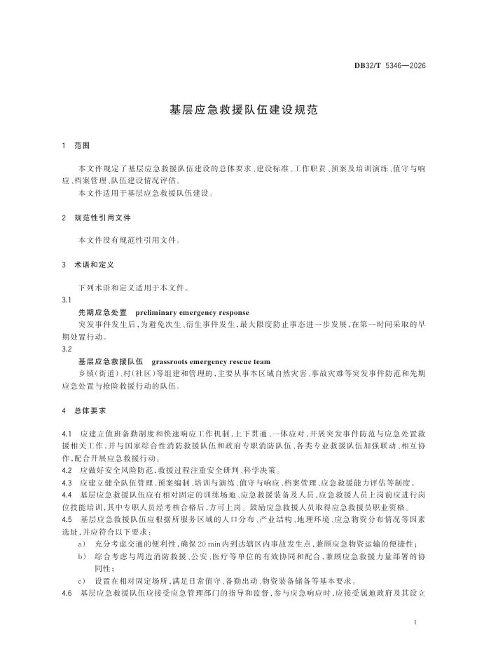 DB32/T 5346-2026 基层应急救援队伍建设规范