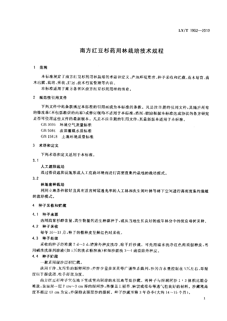 LY/T 1902-2010 南方红豆杉药用林栽培技术规程