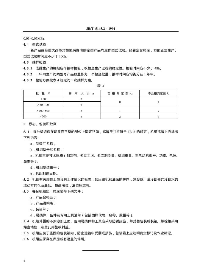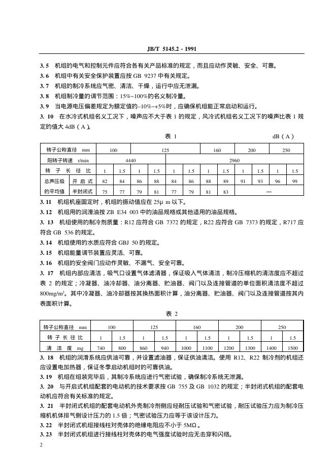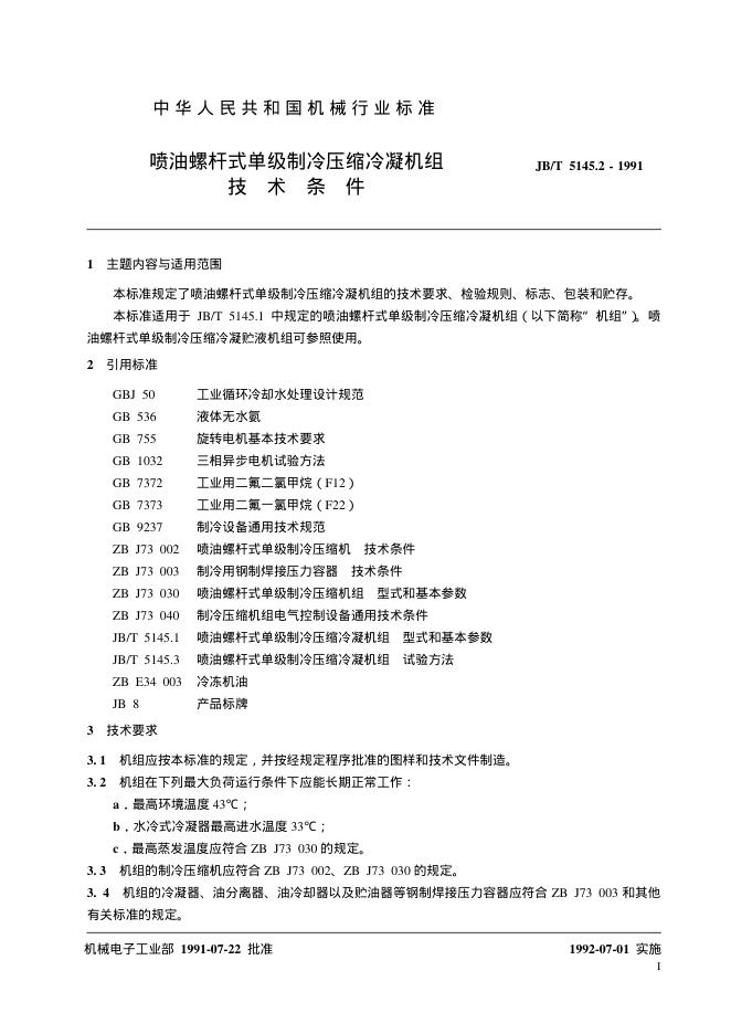 JB/T 5145.2-1991 喷油螺杆式单级制冷压缩冷凝机组 技术条件