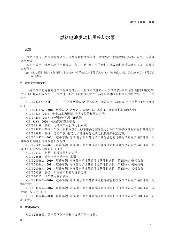 QC/T 1236-2025 燃料电池发动机用冷却水泵