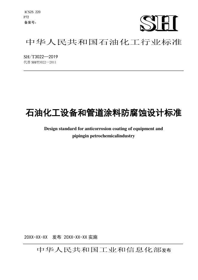 SH/T 3022-2019 石油化工设备和管道涂料防腐蚀设计标准(附条文说明)