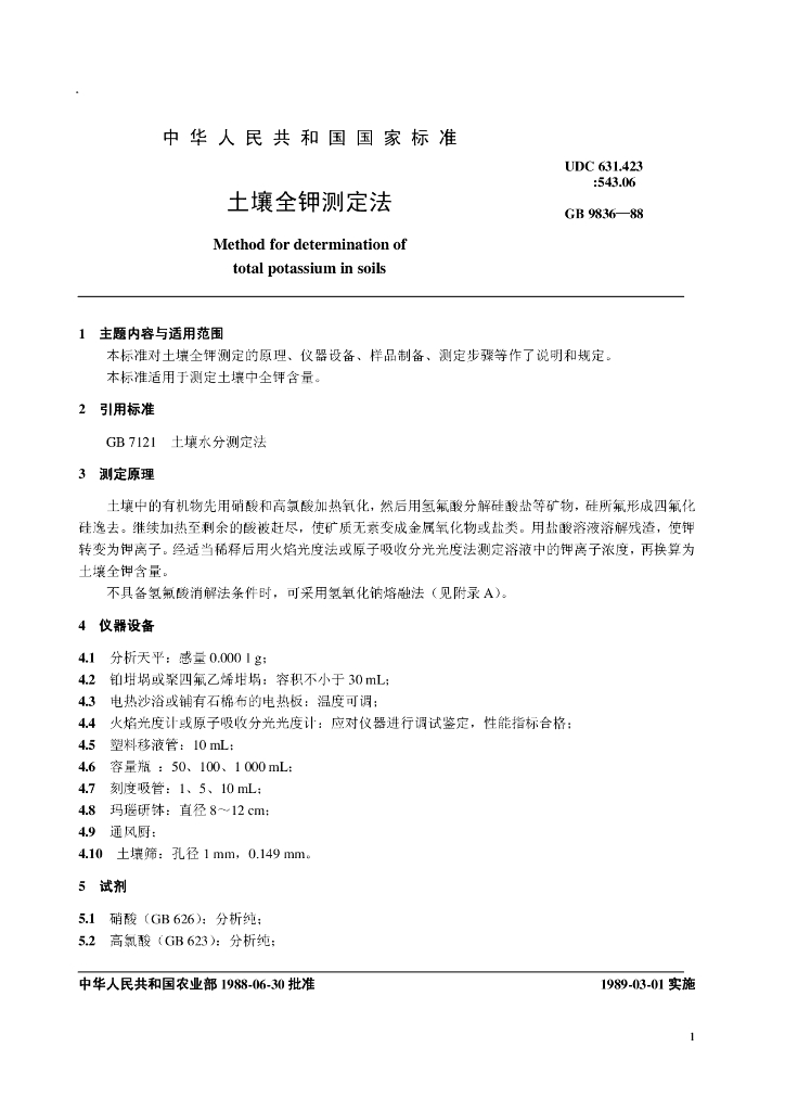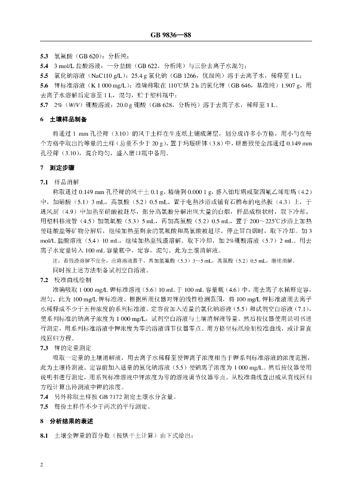 NY/T 87-1988 土壤全钾测定法