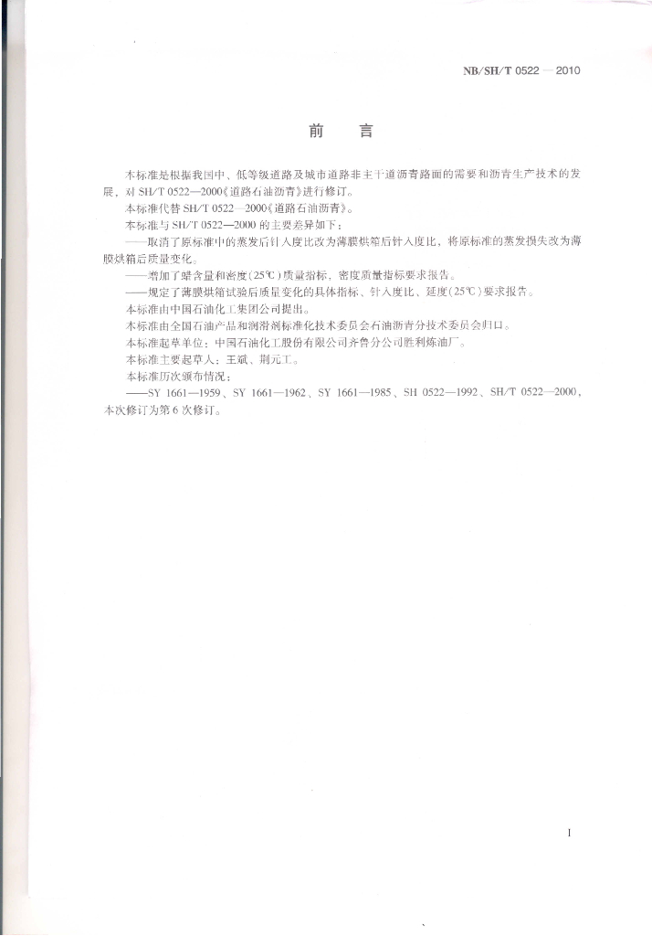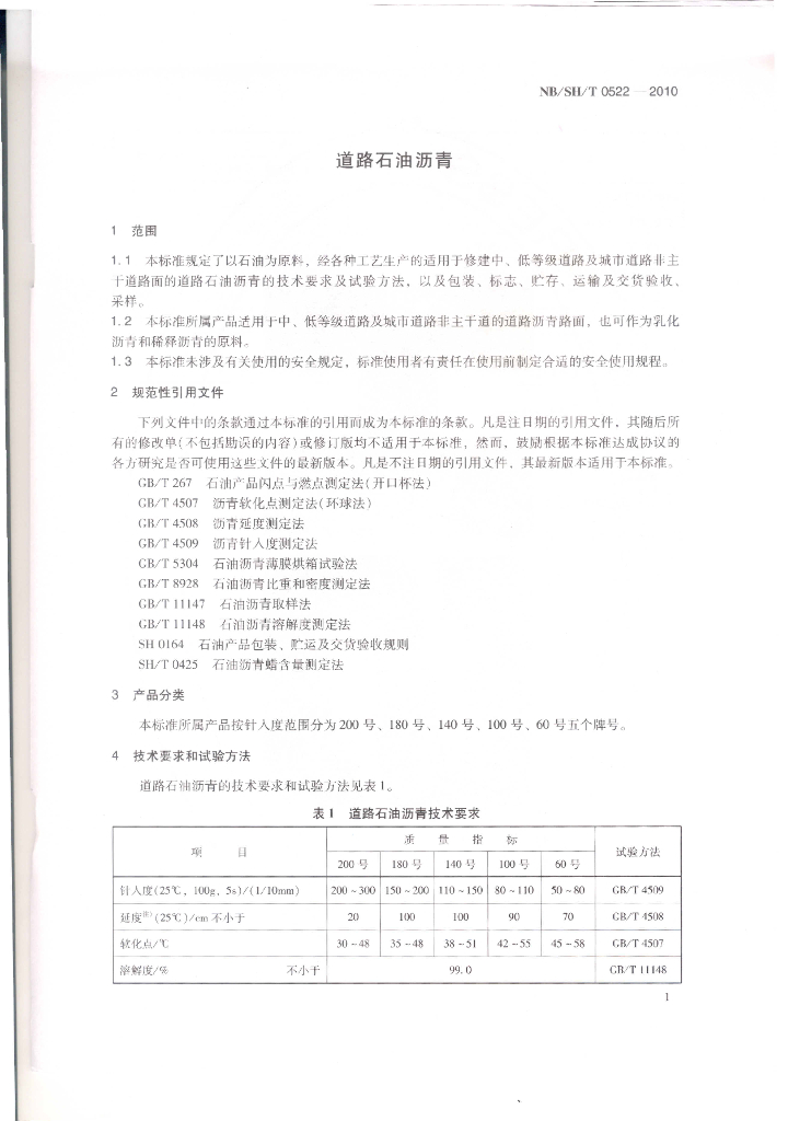 NB/SH/T 0522-2010 道路石油沥青