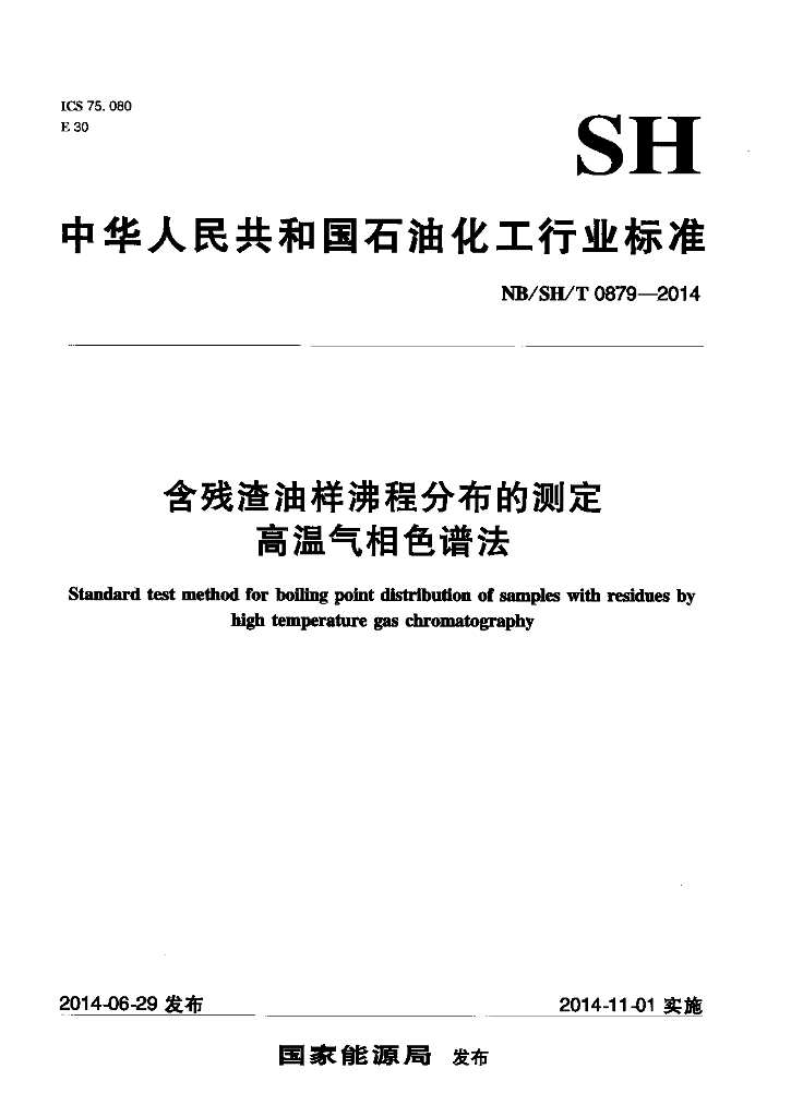 NB/SH/T 0879-2014 含残渣油样沸程分布的测定 高温气相色谱法