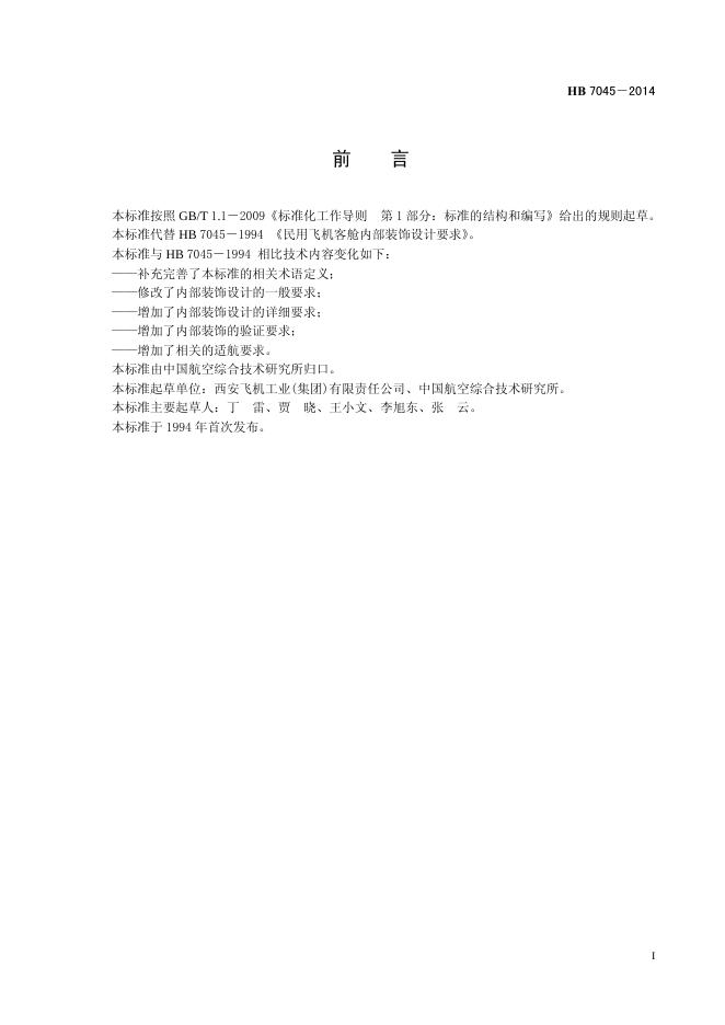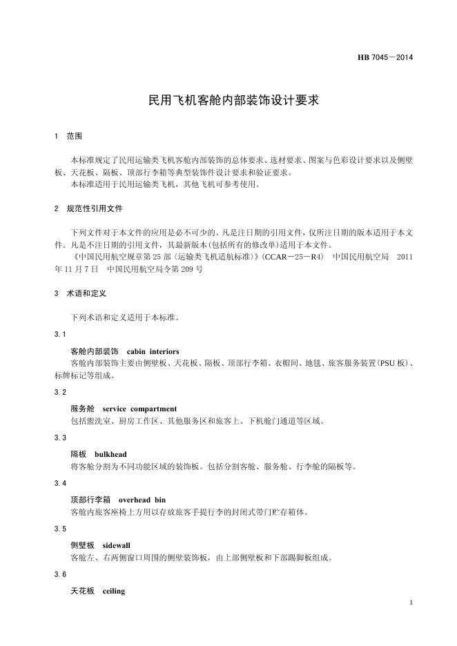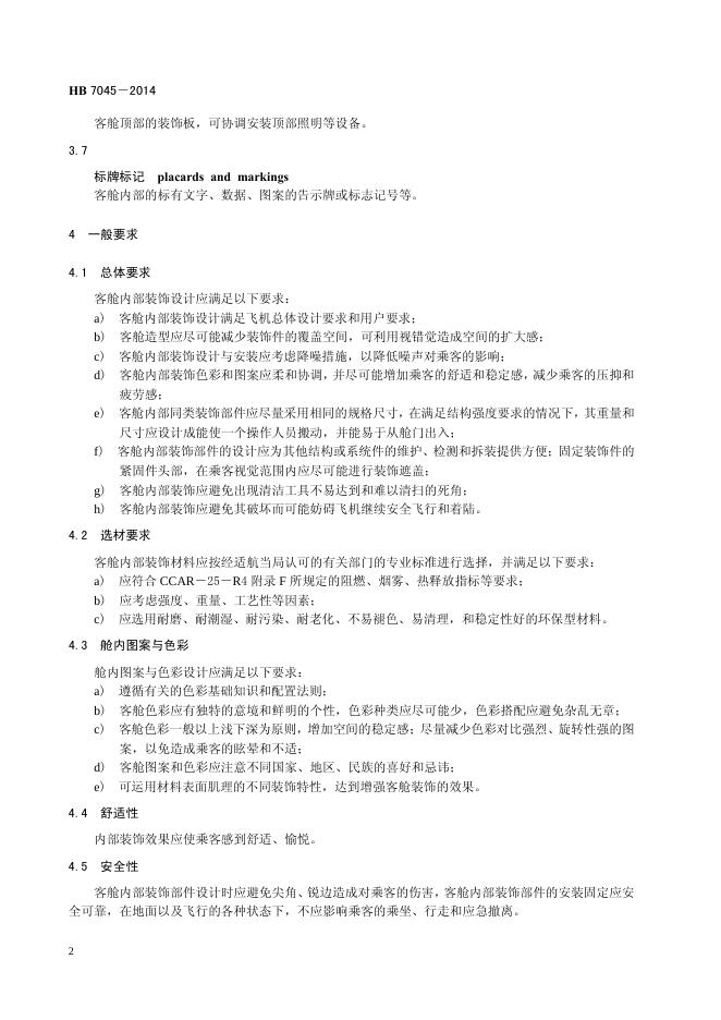 HB 7045-2014(2017) 民用飞机客场内部装饰设计要求