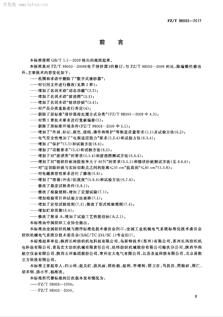 - 代替标准:FZ/T 98003-2009