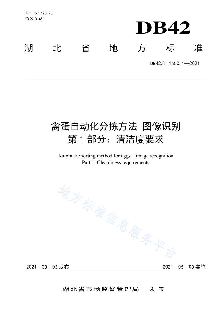 DB42/T 1650.1-2021 禽蛋自动化分拣方法 图像识别 第1部分:清洁度要求