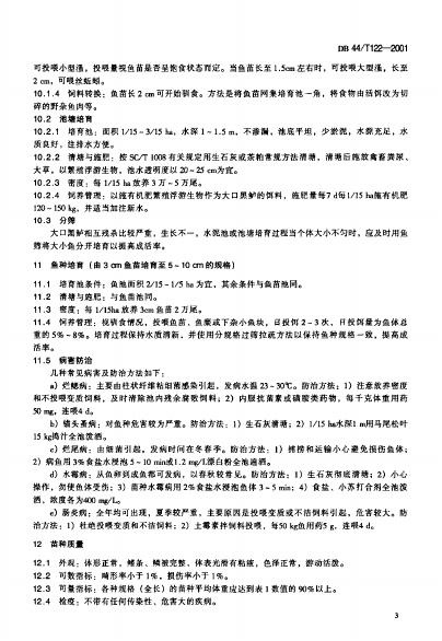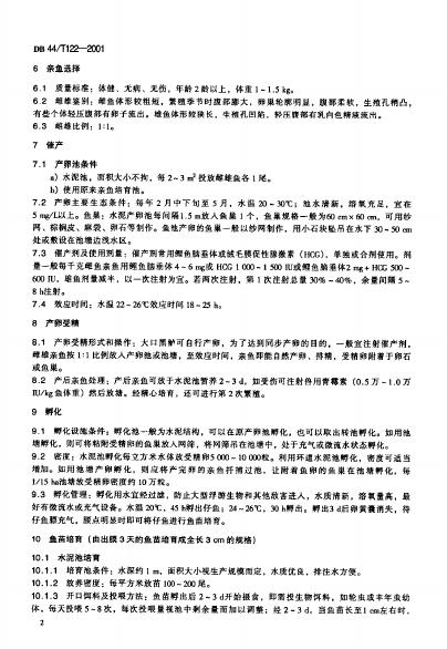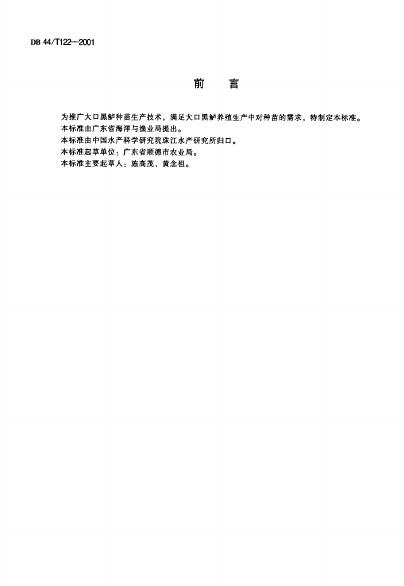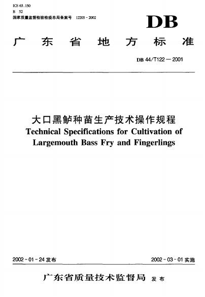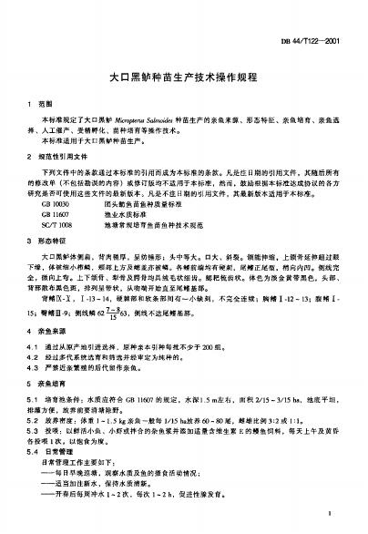 DB44/T 122-2001 大口黑鲈种苗生产技术操作规程