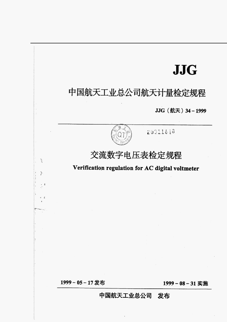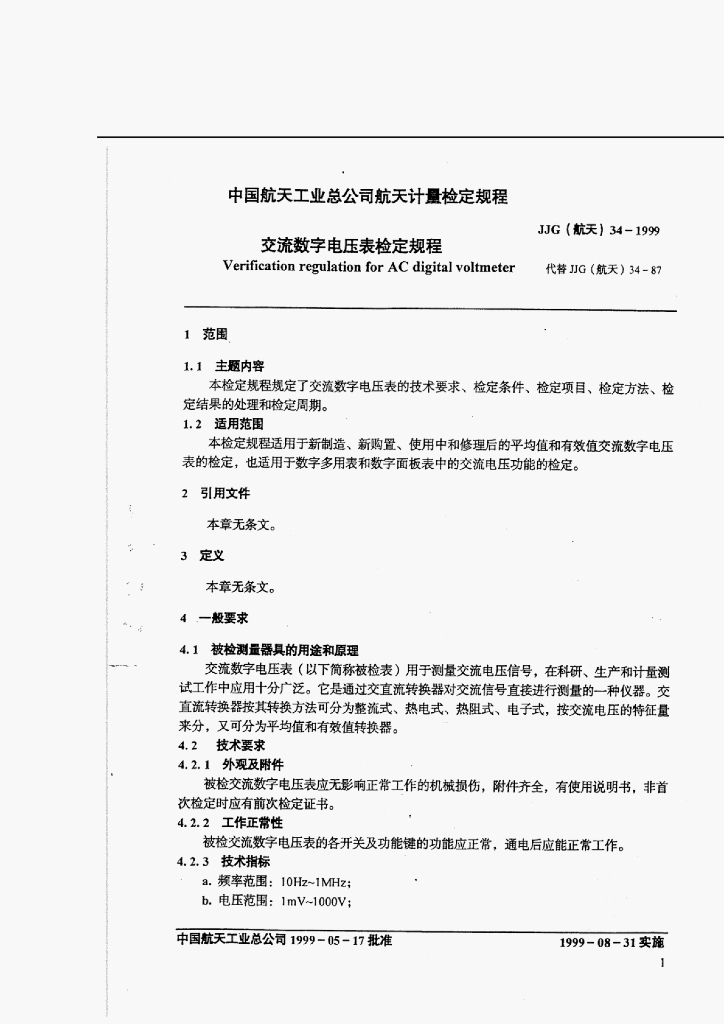 JJG(航天)34-1999 中国航天工业总公司航天计量检定规程交流数字电压表检定规程