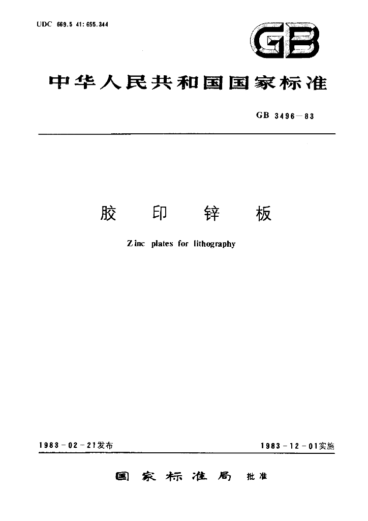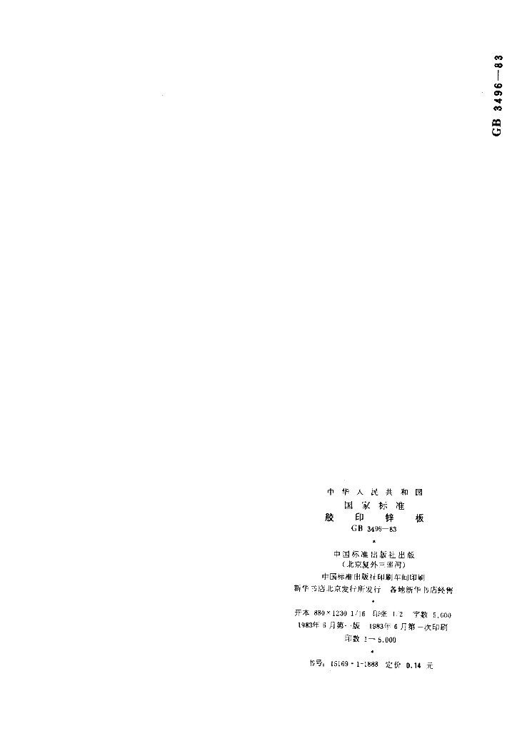 GB/T 3496-1983 胶印锌板