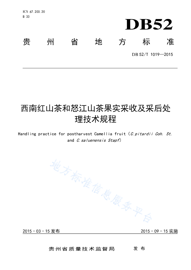 DB52/T 1019-2015 西南红山茶和怒江山茶果实采收及采后处理技术规程