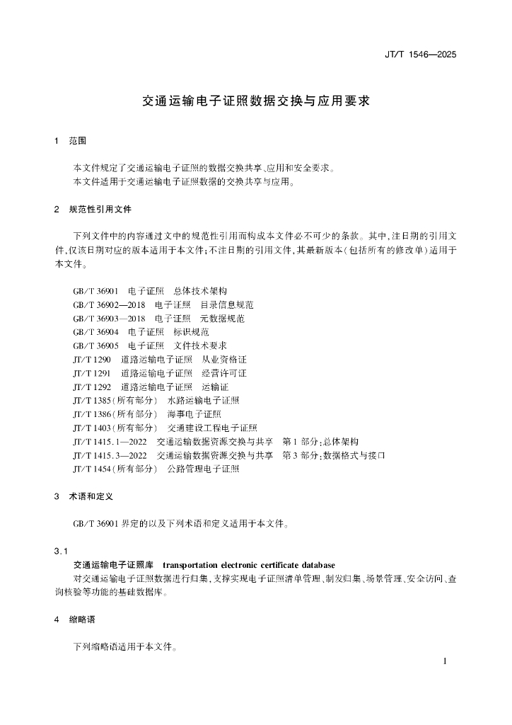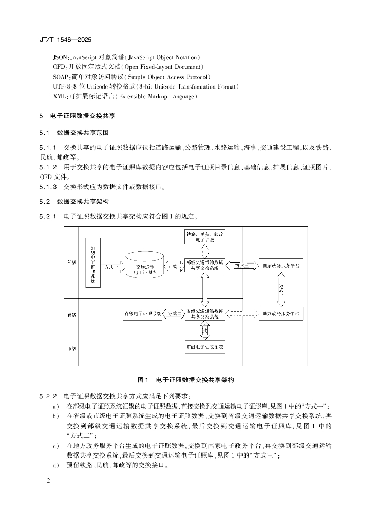 JT/T 1546-2025 交通运输电子证照数据交换与应用要求