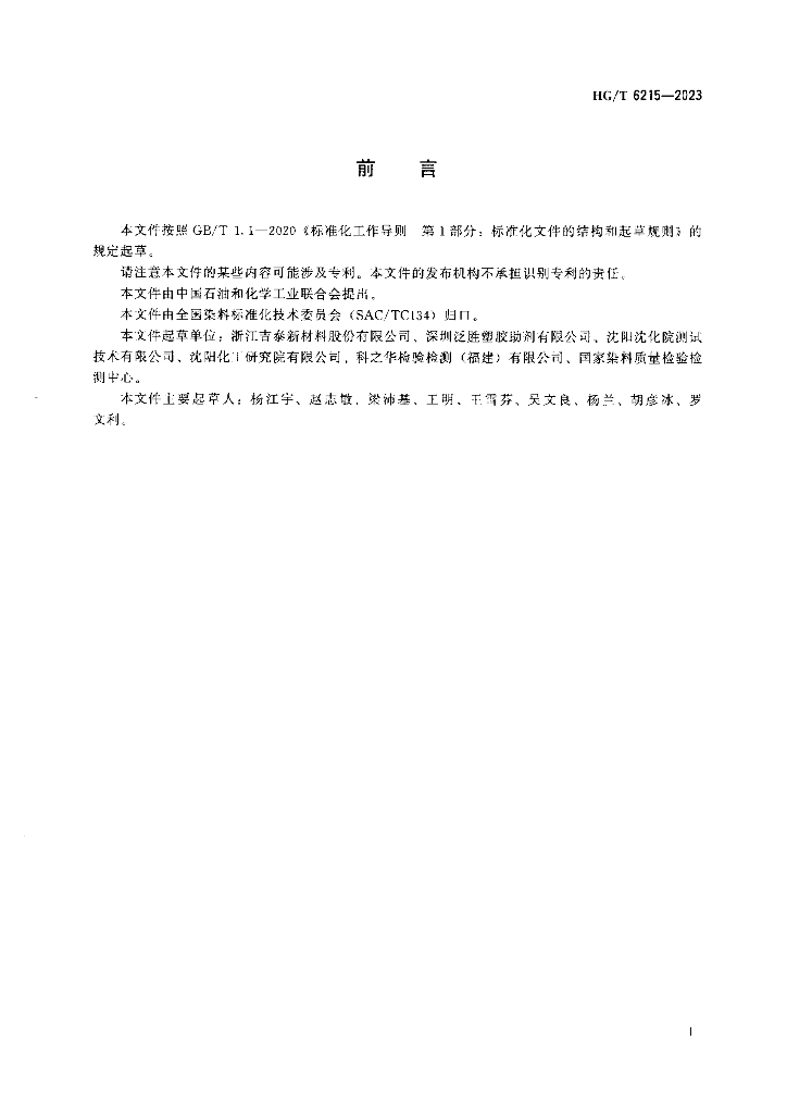 浙江吉泰新材料股份有限公司、深圳泛胜塑胶助剂有限公司、沈阳沈化院测试技术有限公司、沈阳化工研究院有限公司、科之华检验检测(福建)有限公司、国家染料质量检验检测中心