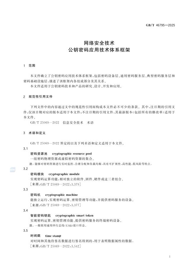 GB/T 46795-2025 网络安全技术 公钥密码应用技术体系框架