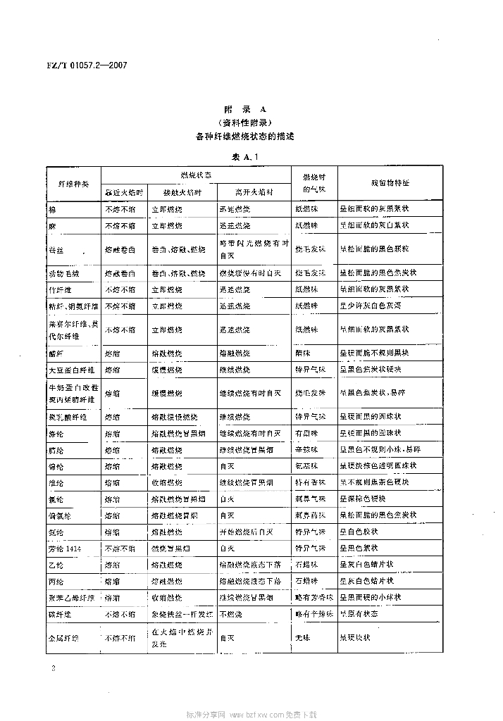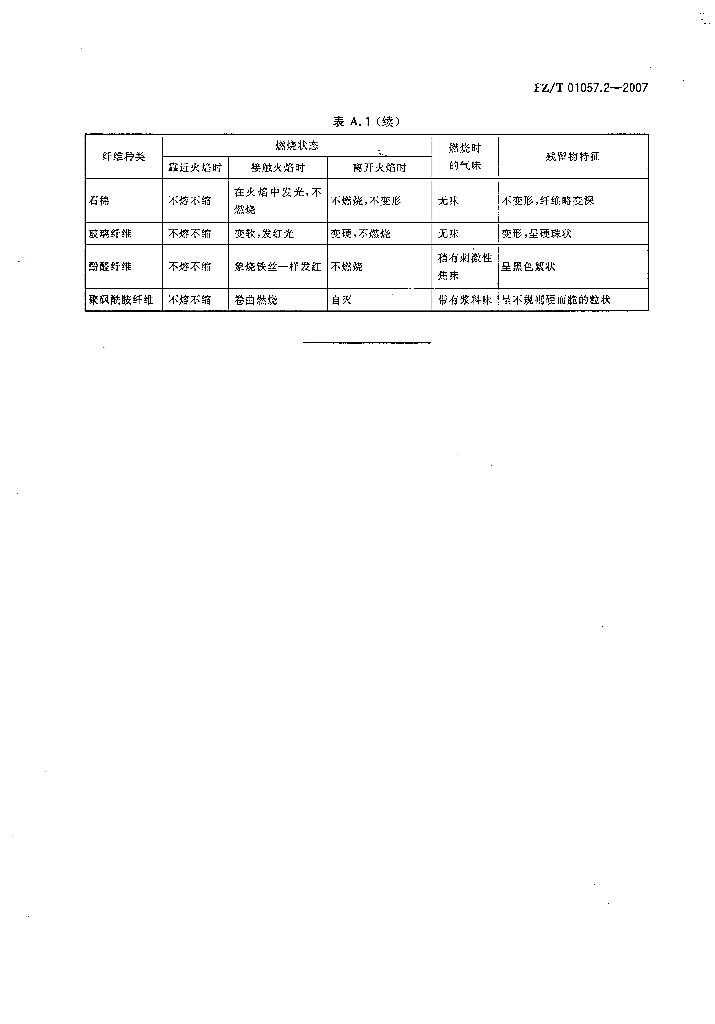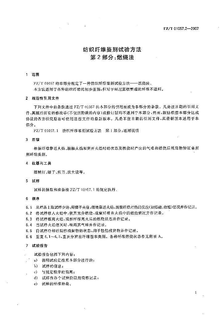 FZ/T 01057.2-2007 纺织纤维鉴别试验方法 第2部分燃烧法