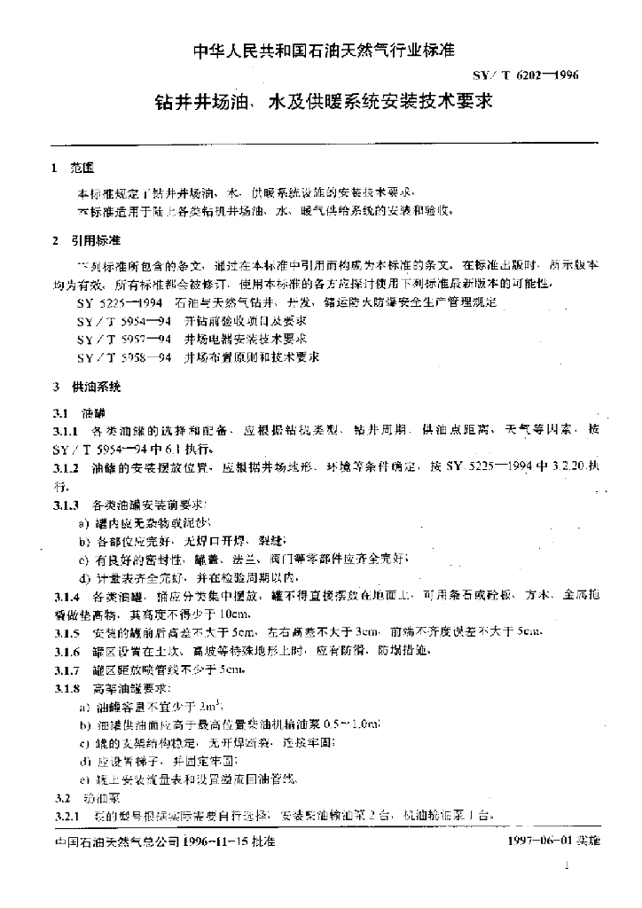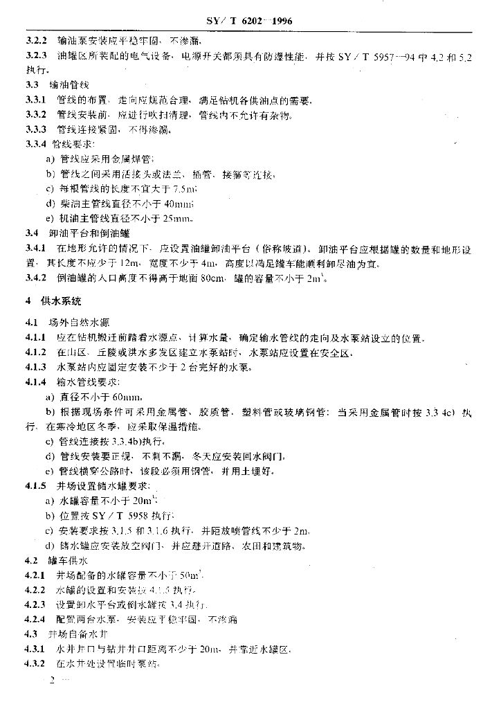SY/T 6202-1996 钻井井场油、水及供暖系统安装技术要求