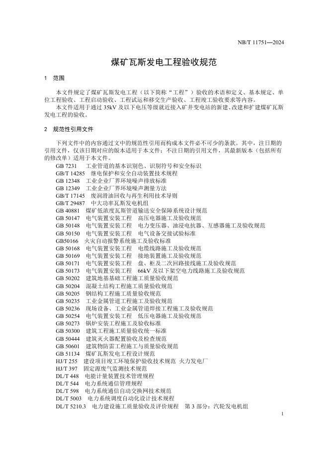 NB/T 11751-2024 煤矿瓦斯发电工程验收规范