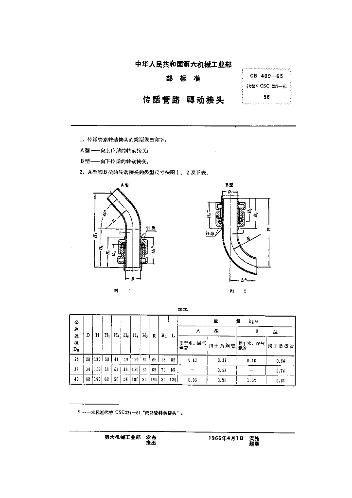 CB 409-1965 传话管路聘动接头