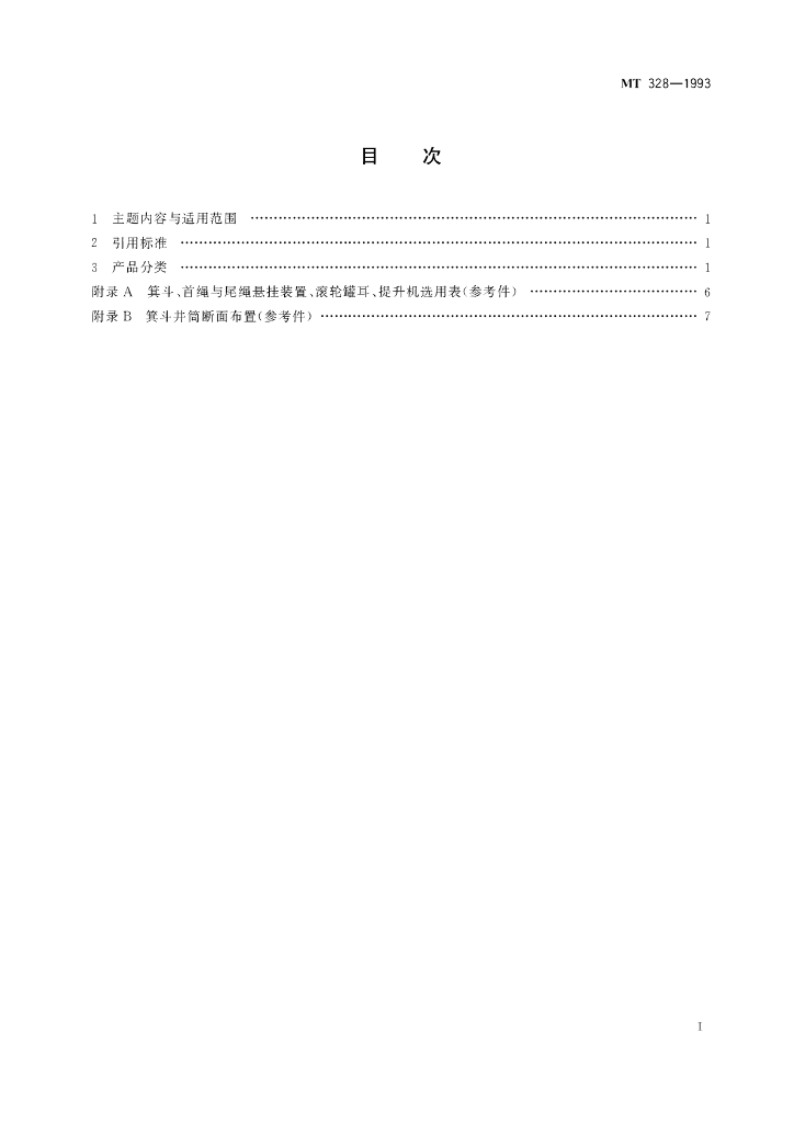 MT 328-1993 JG系列立井大型多绳箕斗基本参数