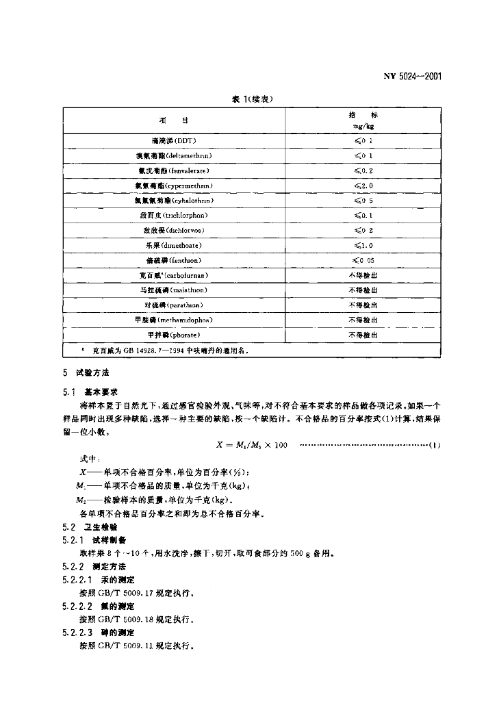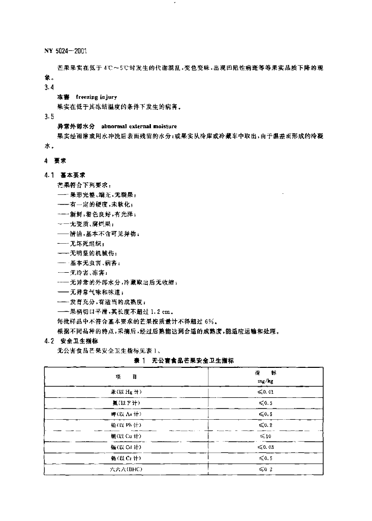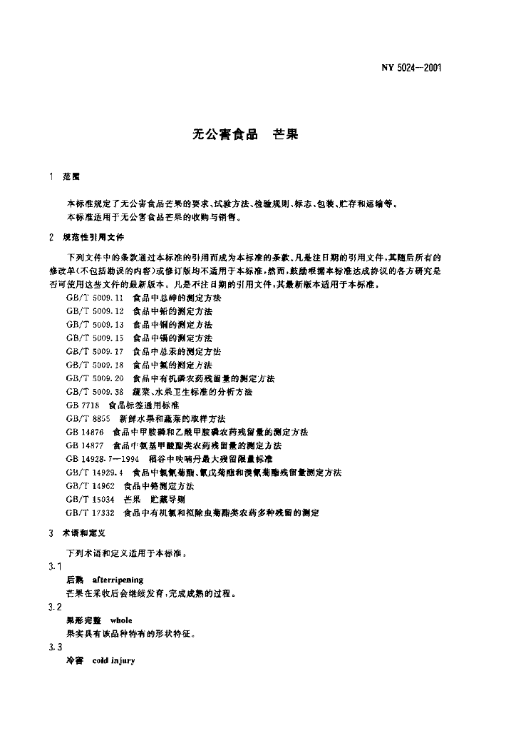 NY 5024-2001 无公害食品 芒果