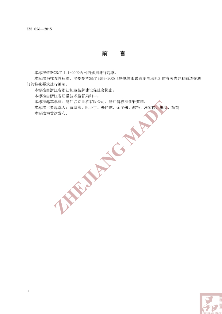 本标准起草单位:浙江联宜电机有限公司、浙江省标准化研究院。