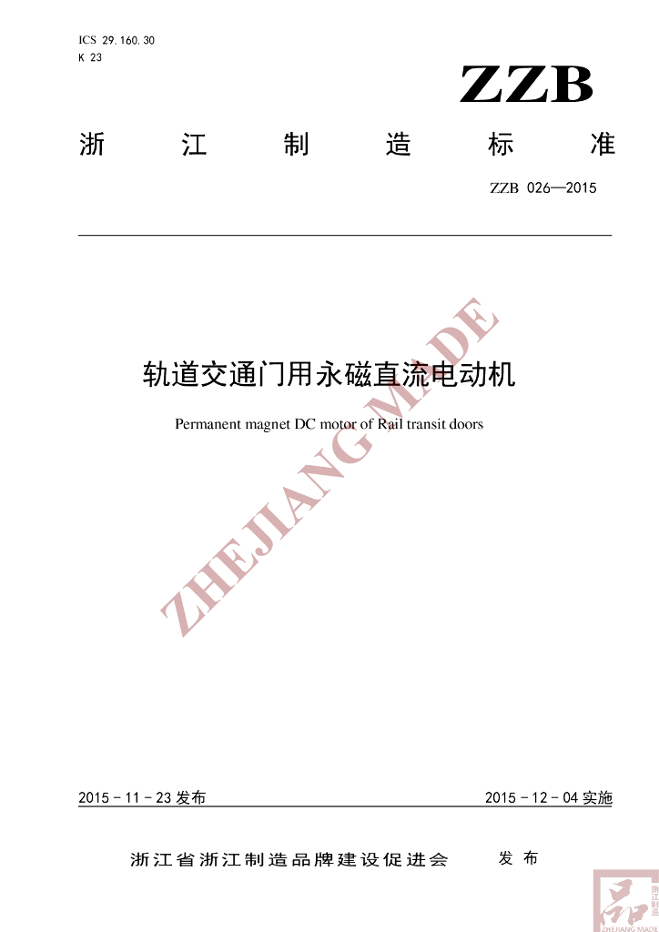 T/ZZB 026-2015 轨道交通门用永磁直流电动机