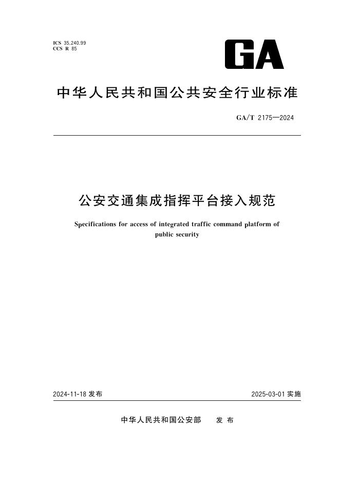 GA/T 2175-2024 公安交通集成指挥平台接入规范