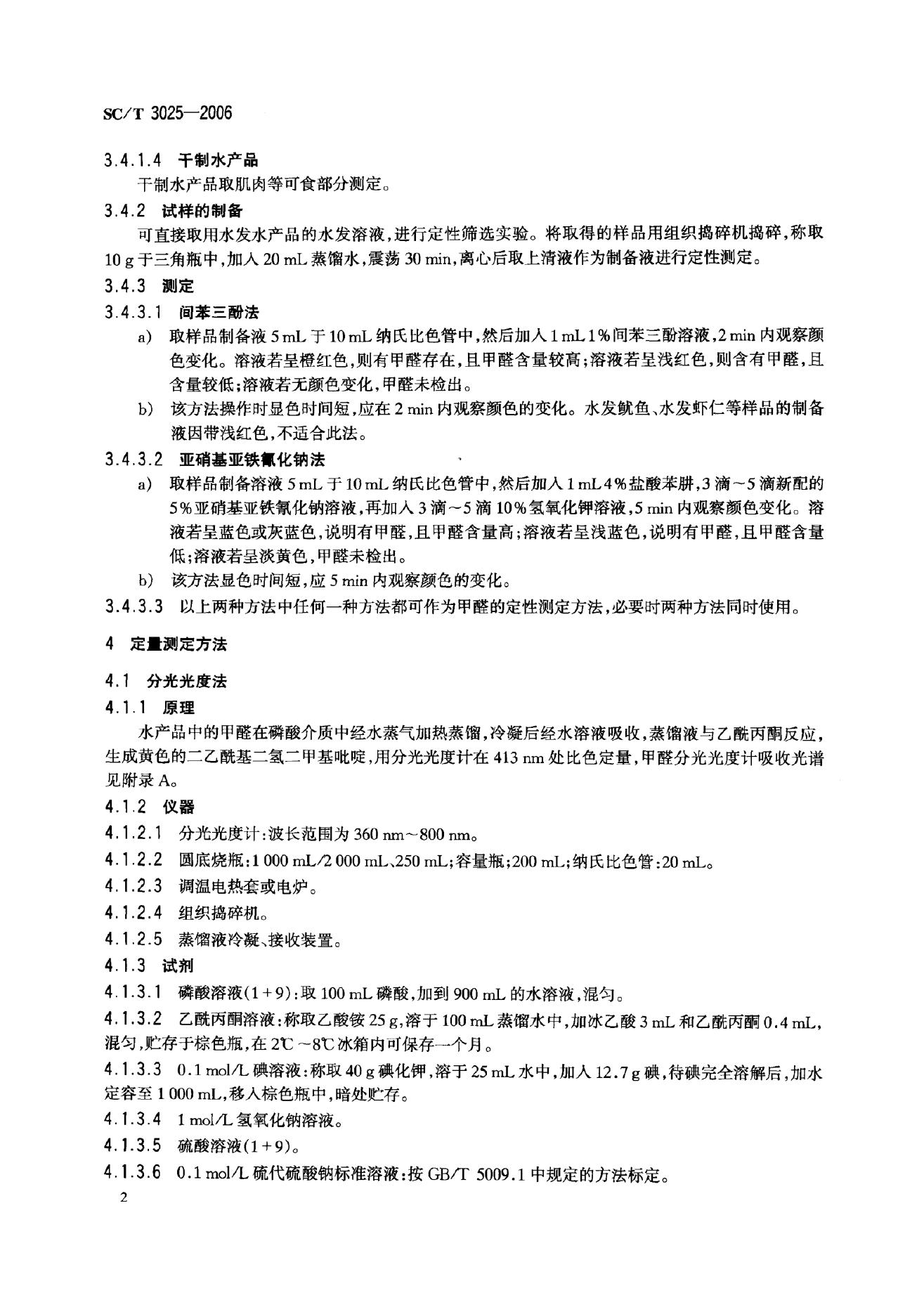 SC/T 3025-2006 水产品中甲醛的测定