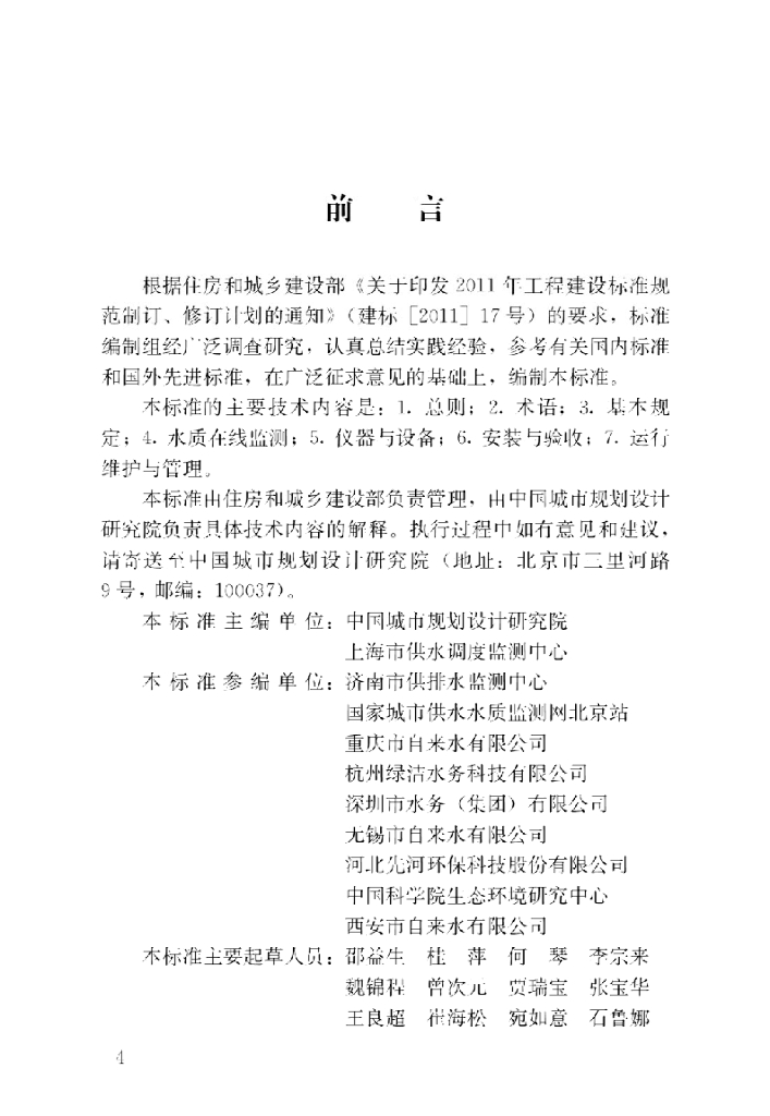 中国城市规划设计研究院、上海市供水调度监测中心、济南市供排水监测中心、国家城市供水水质监测网北京站、重庆市自来水有限公司、杭州绿洁水务科技有限公司、深圳市水务(集团)有限公司、无锡市自来水有限公司、河北先河环保科技股份有限公司、中国科学院生态环境研究中心、西安市自来水有限公司