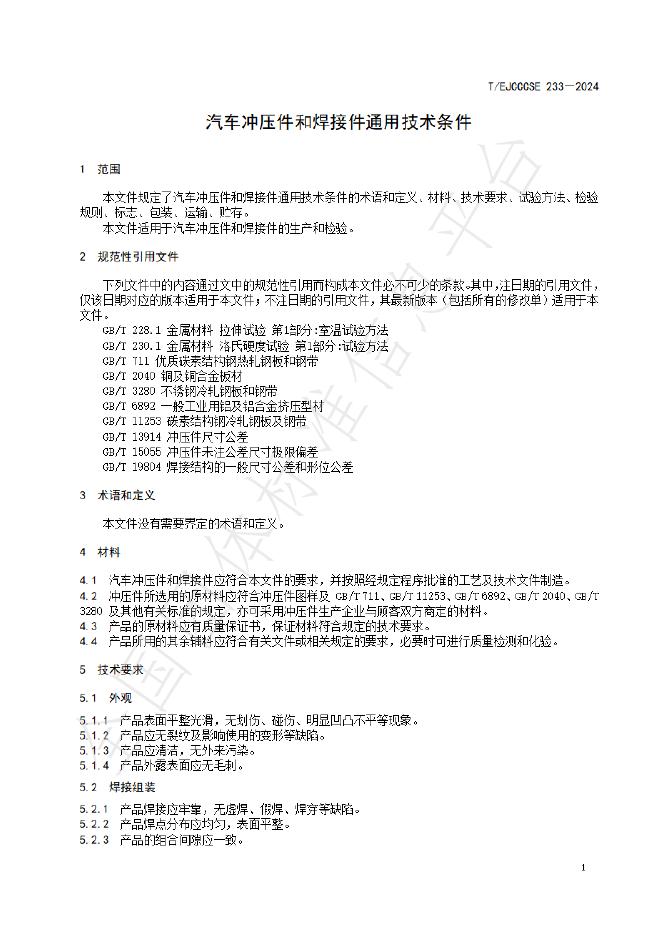 T/EJCCCSE 233-2024 汽车冲压件和焊接件通用技术条件