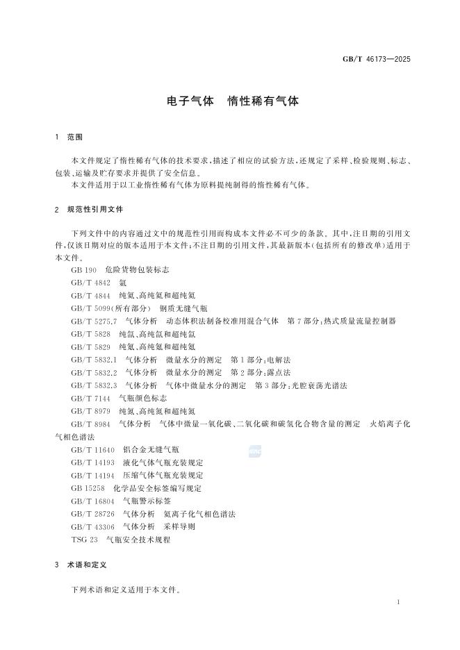 GB/T 46173-2025 电子气体 惰性稀有气体