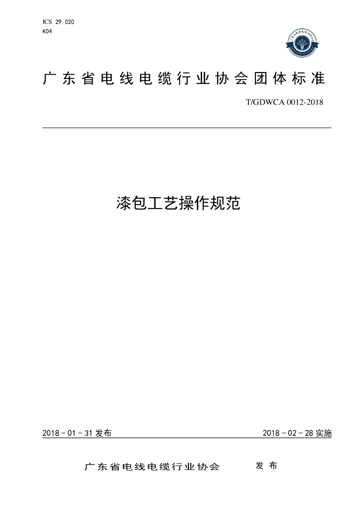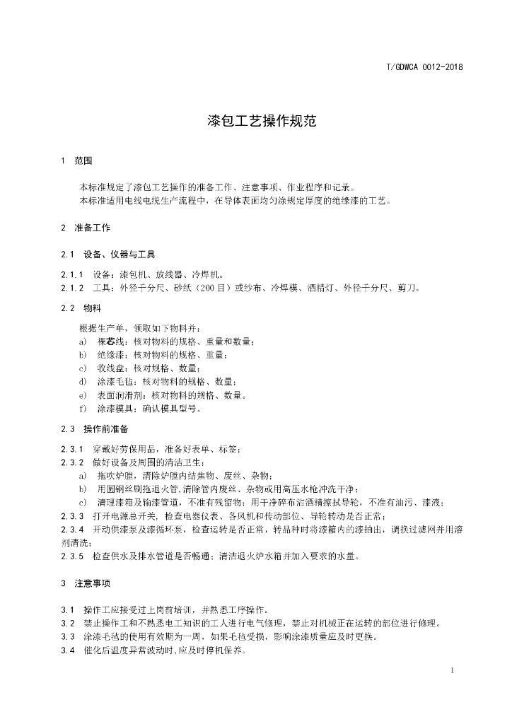 T/GDWCA 0012-2018 漆包工艺操作规范