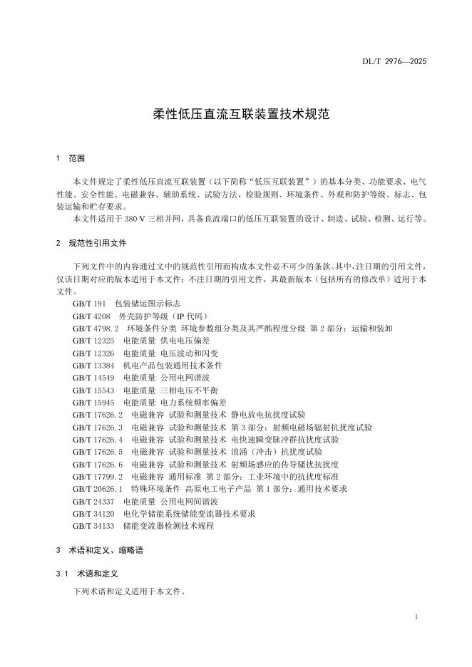 DL/T 2976-2025 柔性低压直流互联装置技术规范