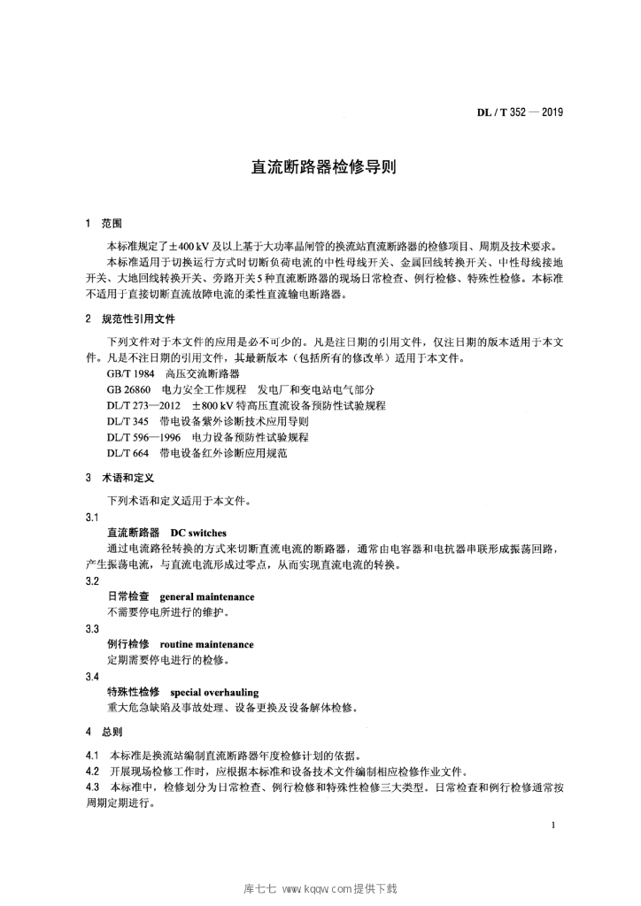 DL/T 352-2019 直流断路器检修导则