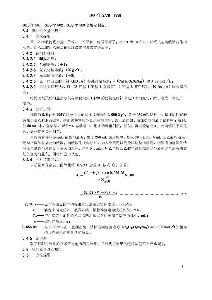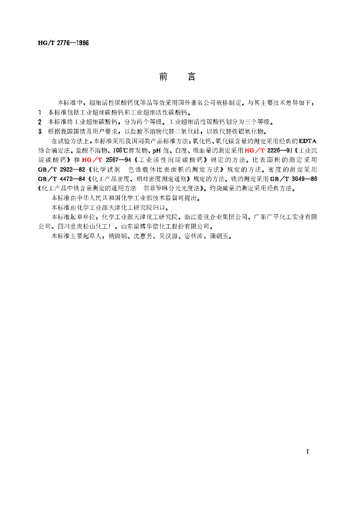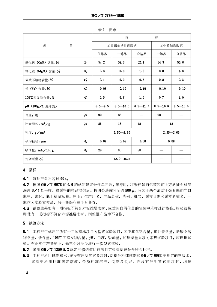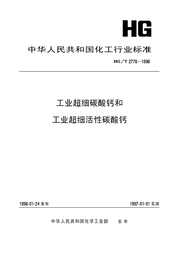 HG/T 2776-1996 工业超细碳酸钙和超细活性碳酸钙